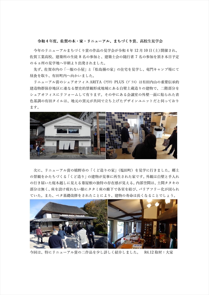 第8回「佐賀の木・家、リニューアル・まちづくり賞」見学会(令和5年1月5日)