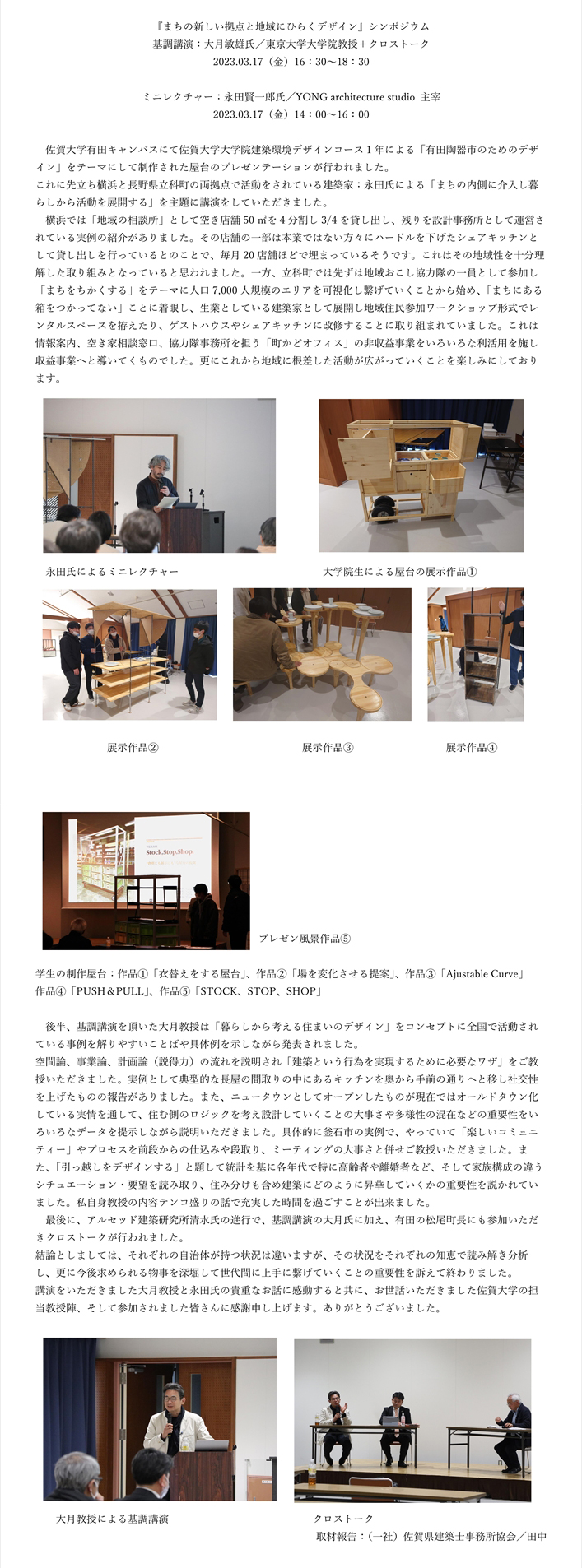 「まちの新しい拠点と地域にひらくデザイン」シンポジウム「有田陶器市のための屋台提案」展示会(令和5年3月18日)